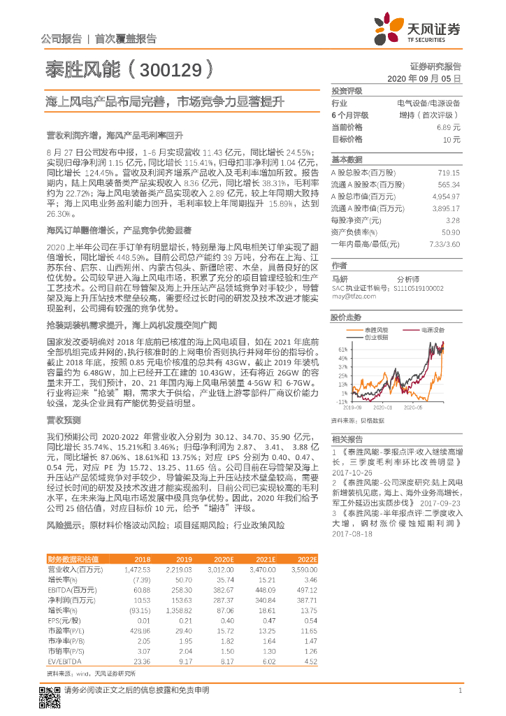 天风证券:泰胜风能(300129)-海上风电产品布局完善,市场竞争力显著提升.pdf
