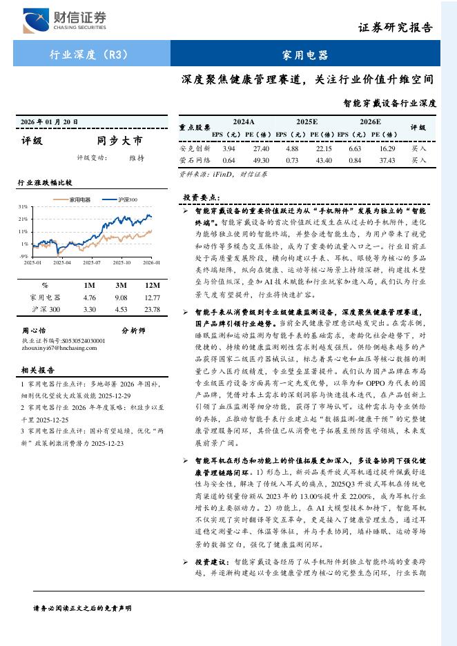 财信证券:智能穿戴设备行业深度:深度聚焦健康管理赛道,关注行业价值升维空间.pdf