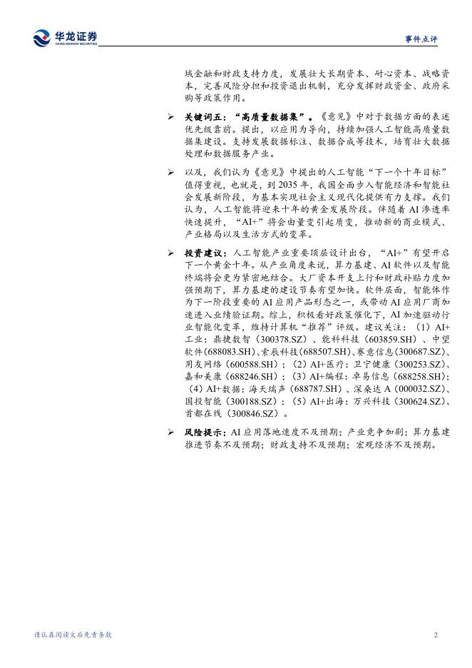 华龙证券:计算机行业点评报告:“人工智能+”顶层设计出台,重视AI产业投资机会.pdf