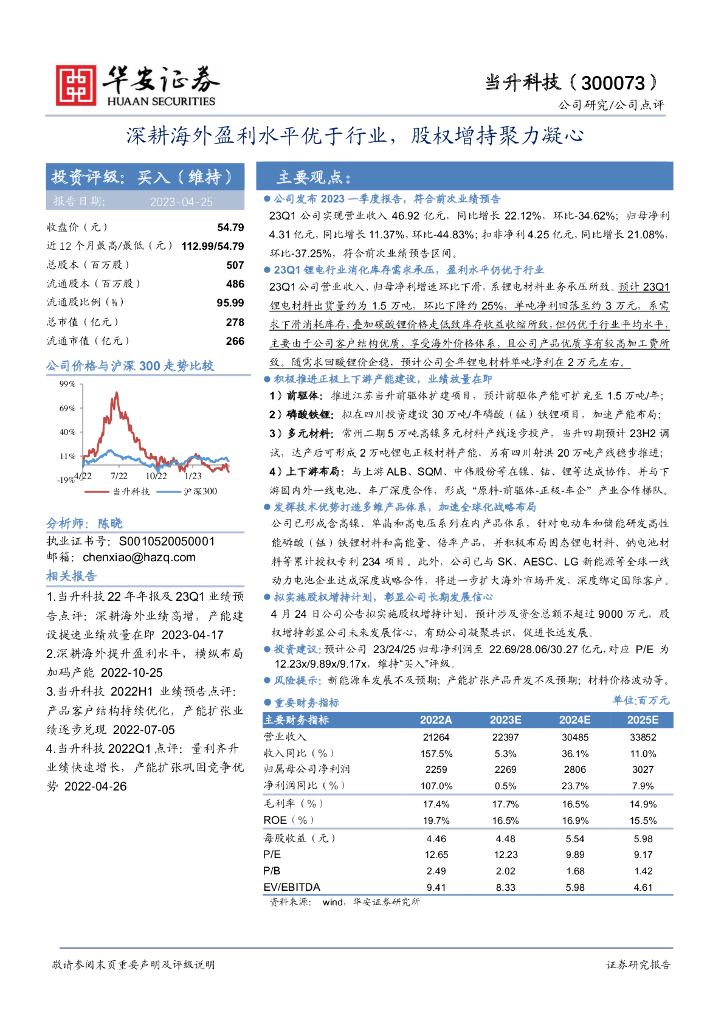 华安证券:当升科技(300073)-深耕海外盈利水平优于行业,股权增持聚力凝心.pdf