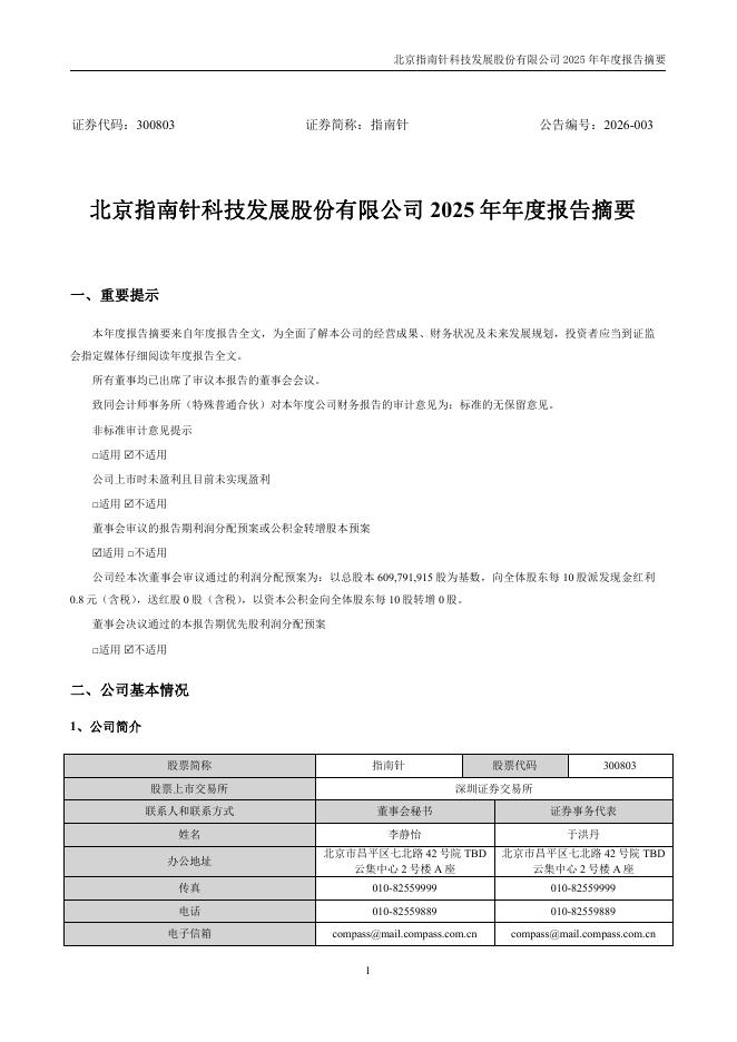 300803-指南针:2025年年度报告摘要.pdf