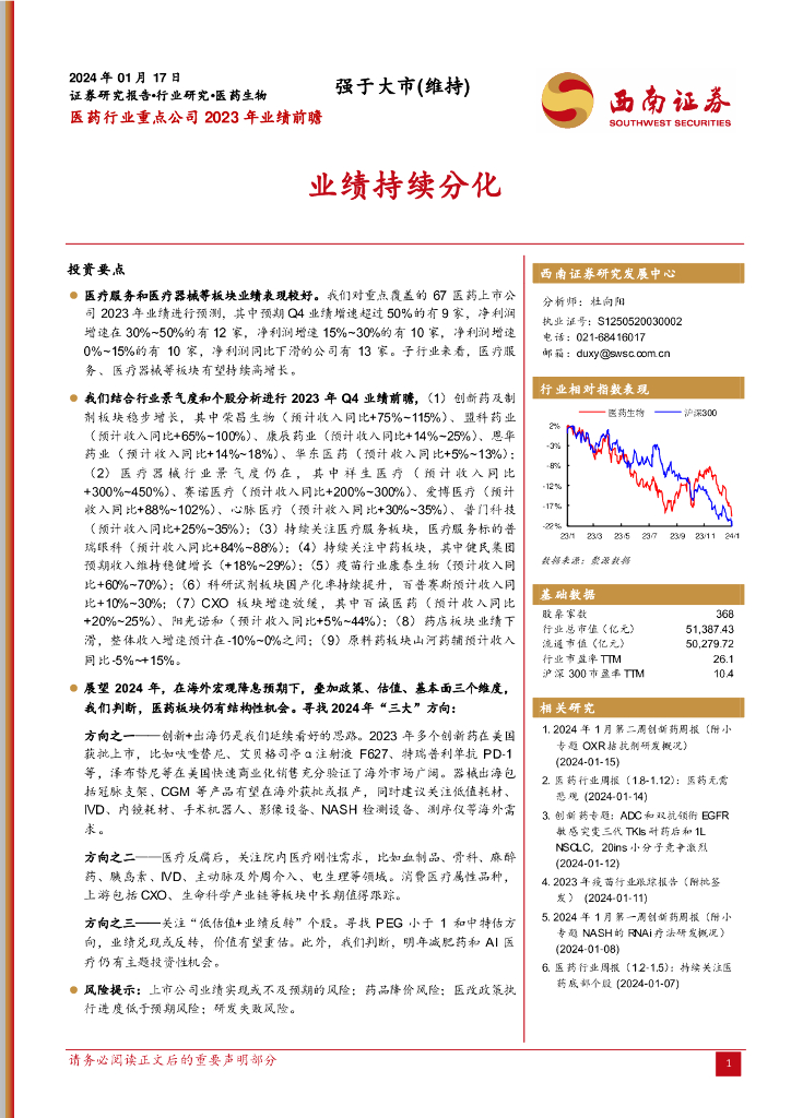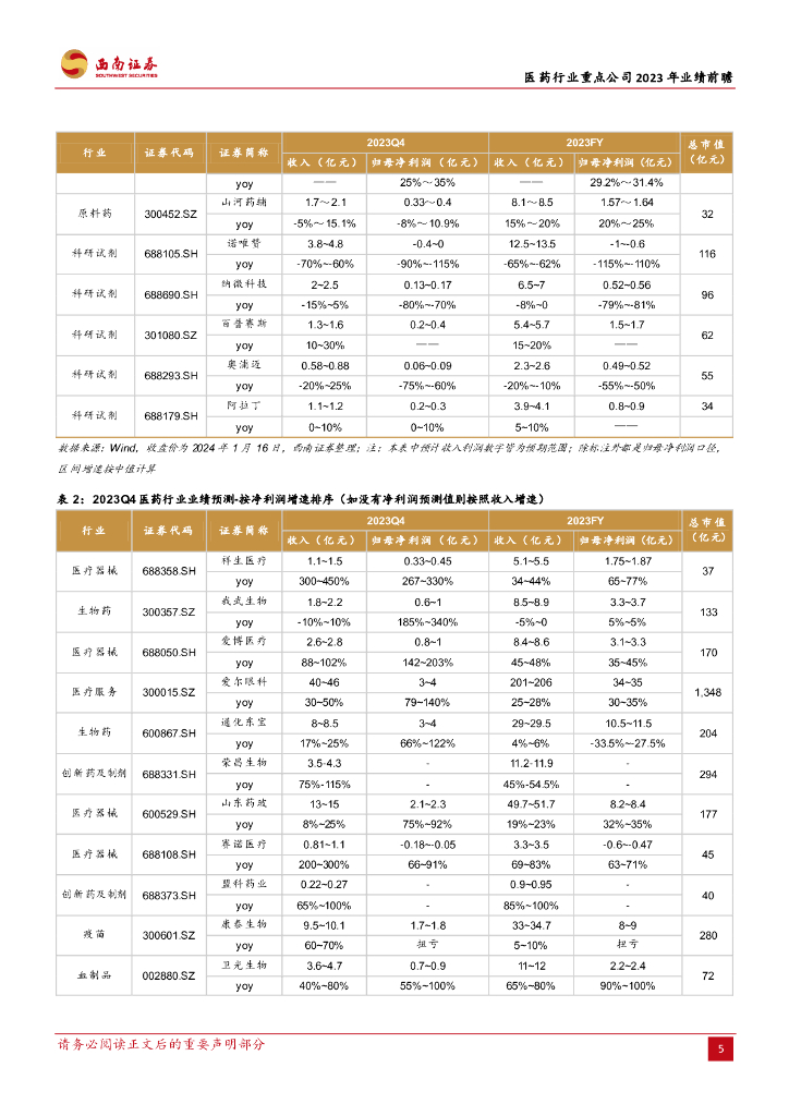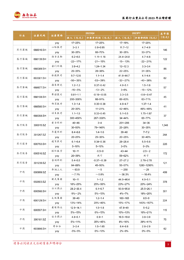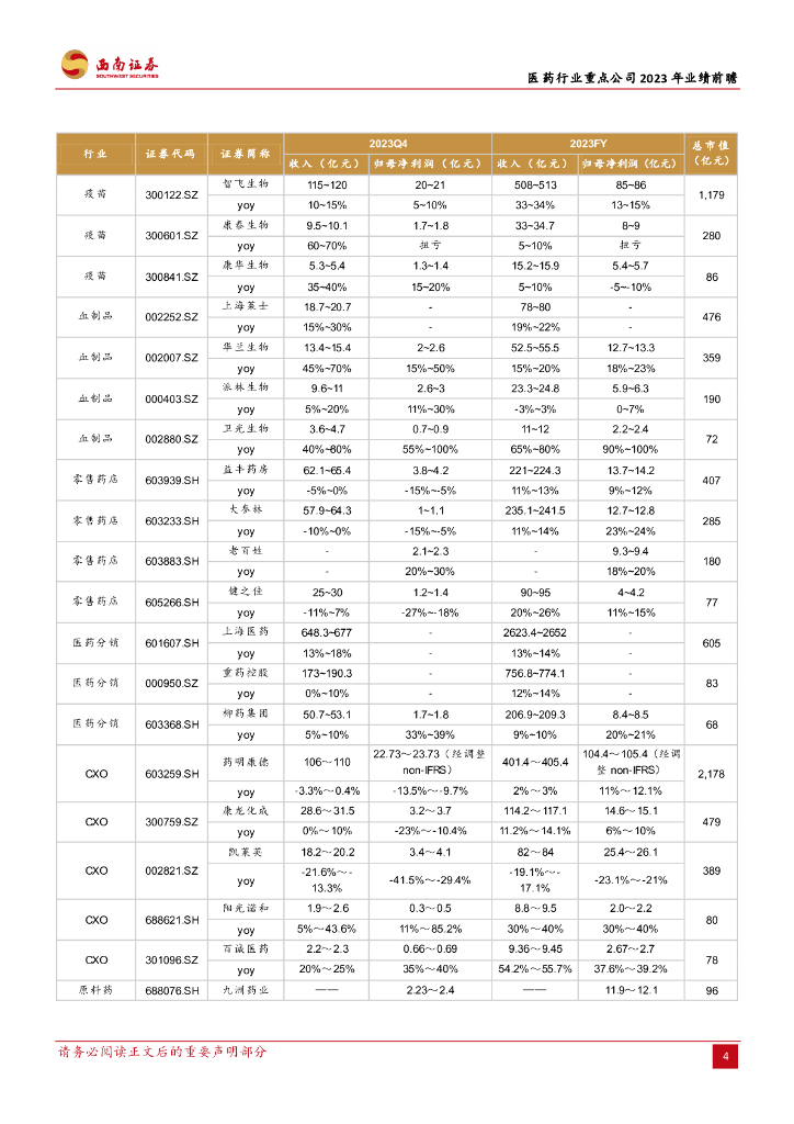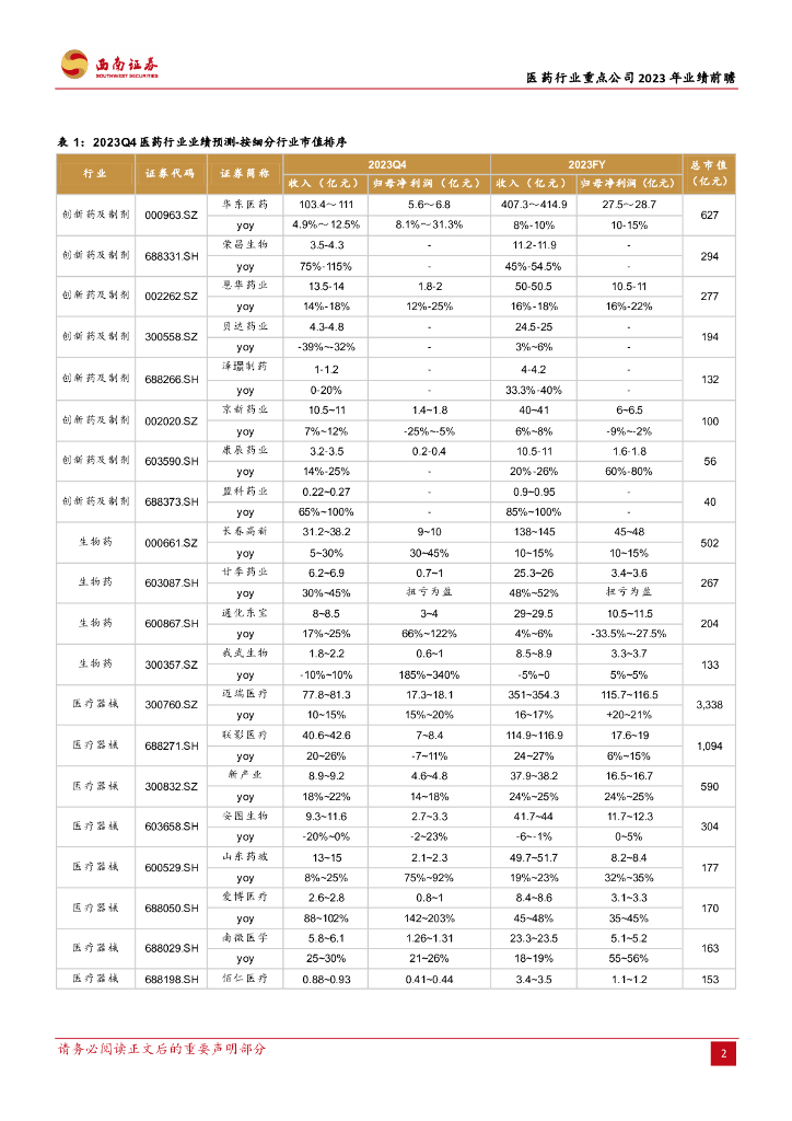 西南证券:医药行业重点公司2023年业绩前瞻:业绩持续分化.pdf