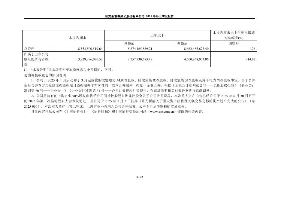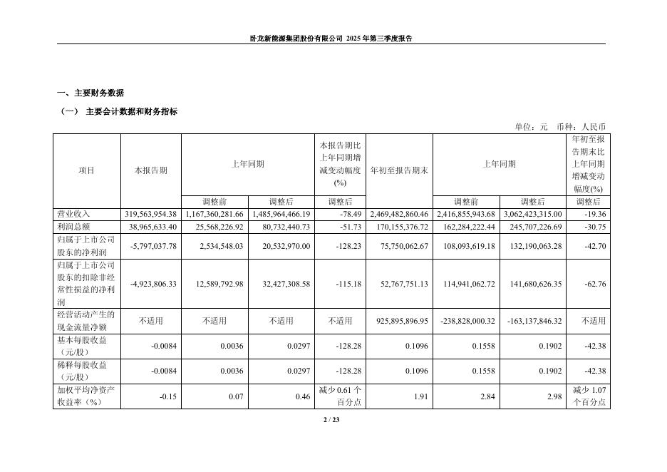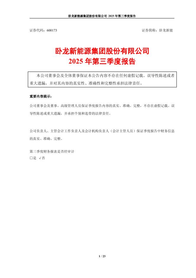 600173-卧龙新能:卧龙新能2025年第三季度报告.pdf
