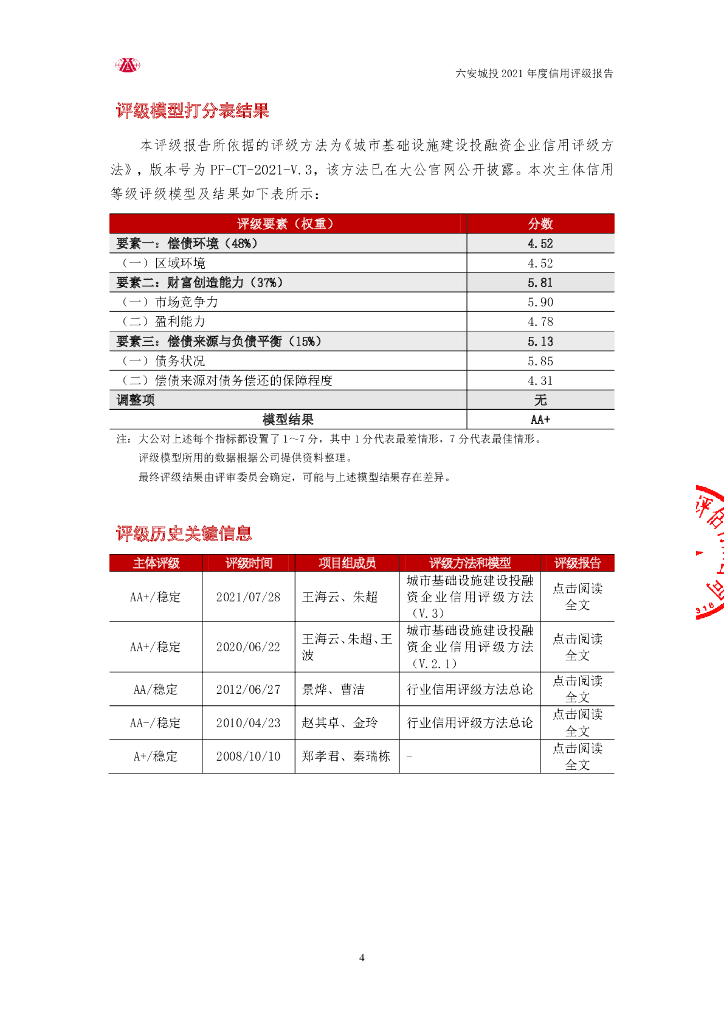 大公:六安城市建设投资有限公司主体信用评级报告及跟踪评级安排.pdf