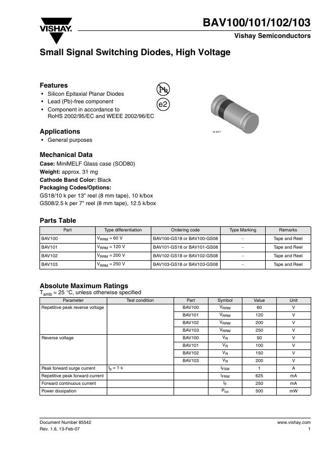 VISHAY BAV100/101/102/103 数据手册.pdf