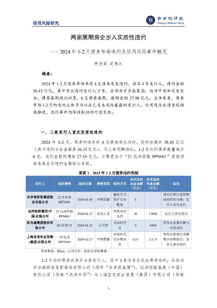新世纪评级:两家展期房企步入实质性违约——2024年1-2月债券市场违约及信用风险事件概况.pdf