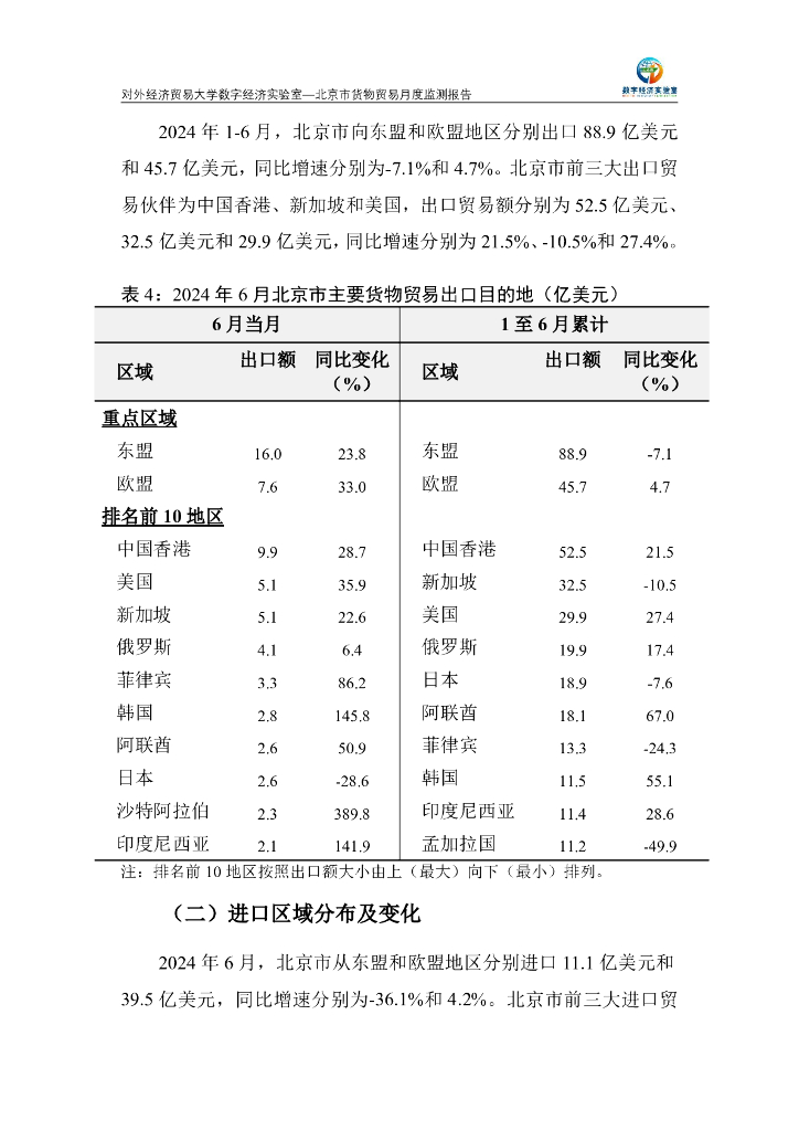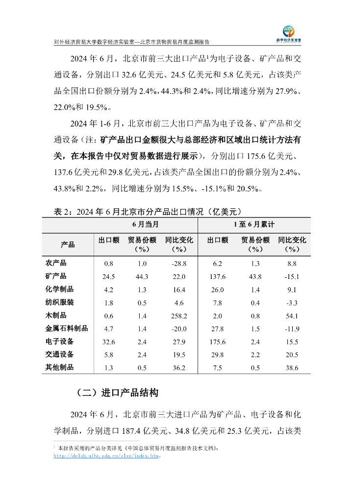 对外经济贸易大学:北京市货物贸易月度监测报告(2024年1-6月).pdf