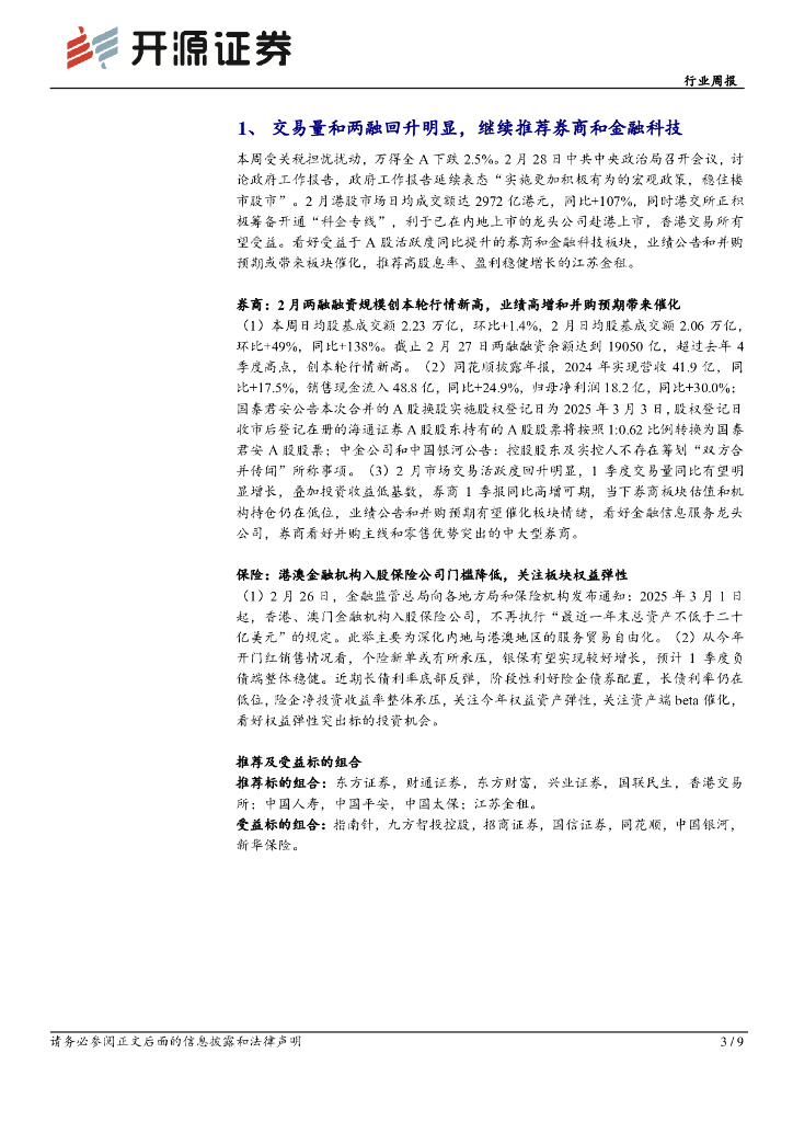 开源证券:非银金融行业周报:交易量和两融回升明显,继续推荐券商和金融科技.pdf