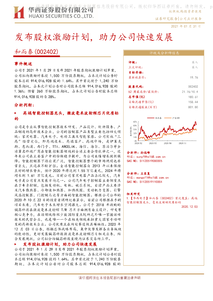华西证券:和而泰(002402)-发布股权激励计划,助力公司快速发展.pdf