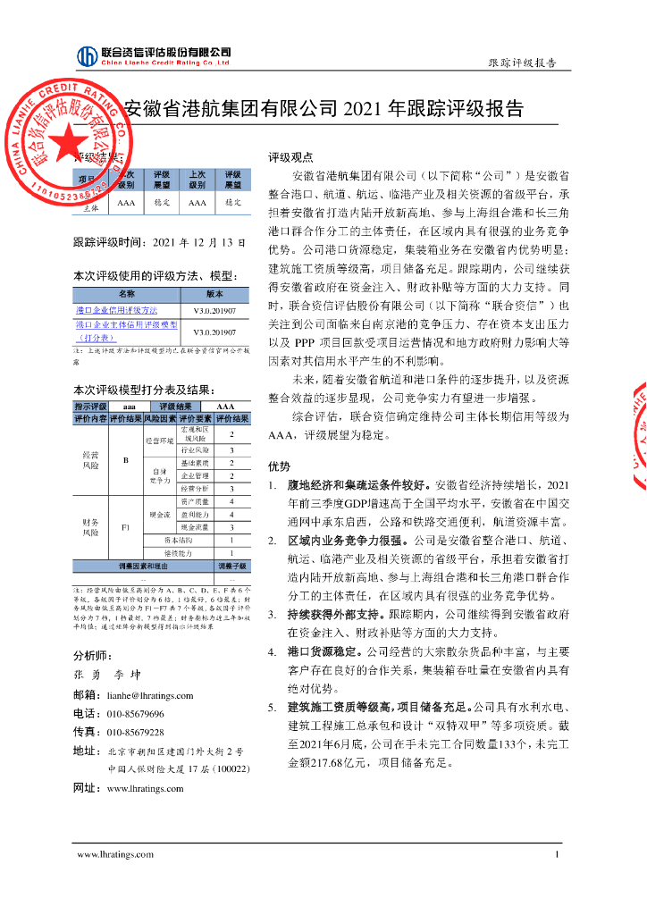 联合资信:安徽省港航集团有限公司主体信用评级报告.pdf