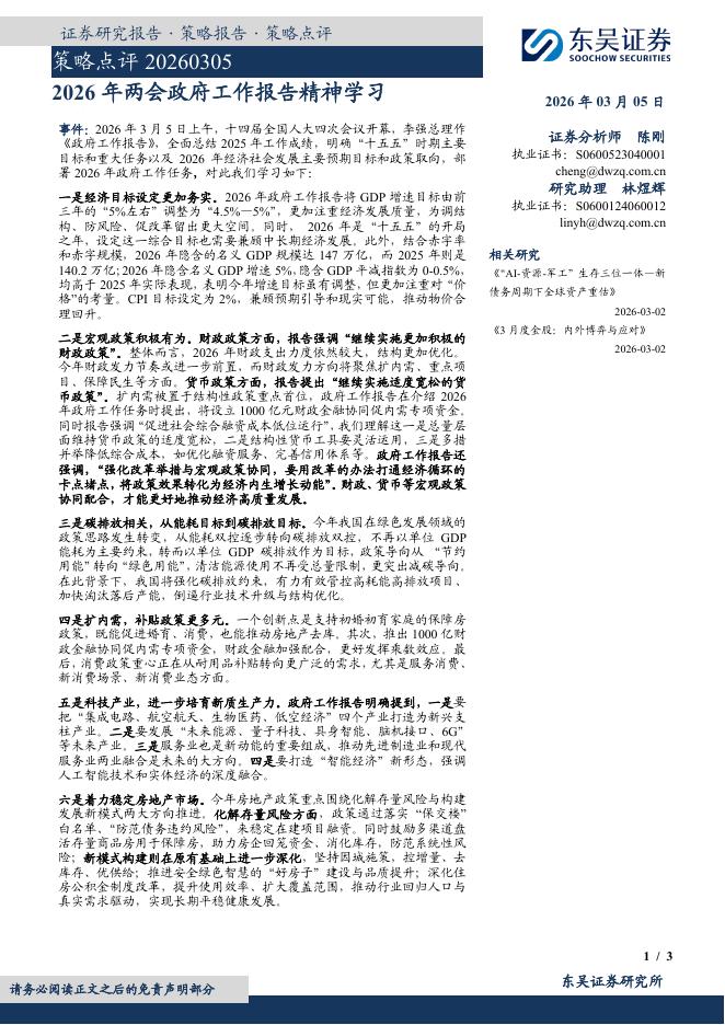 东吴证券:策略点评:2026年两会政府工作报告精神学习-260305.pdf