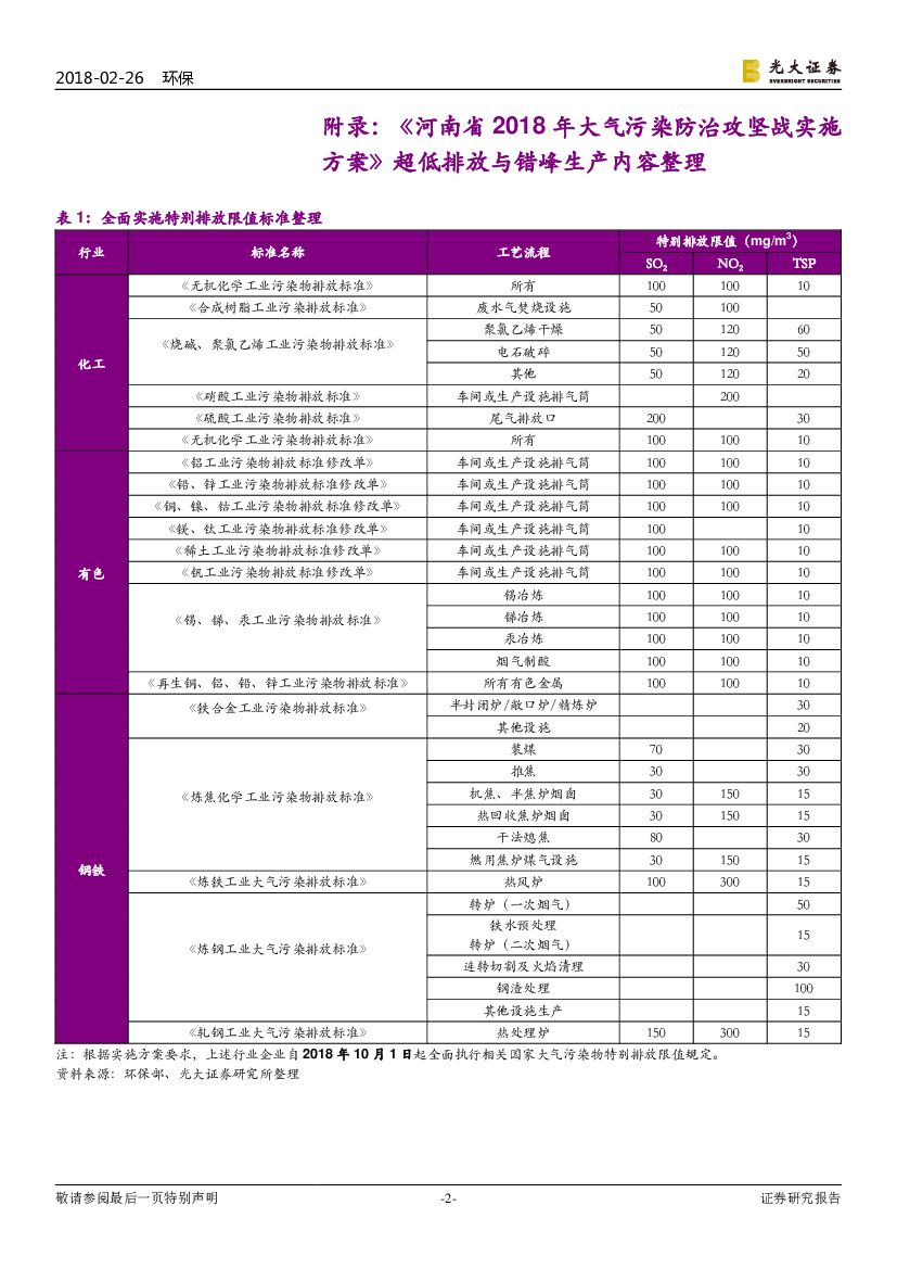 光大证券:河南省2018年大气治理攻坚方案:试点超低排放,实行差别限产.pdf