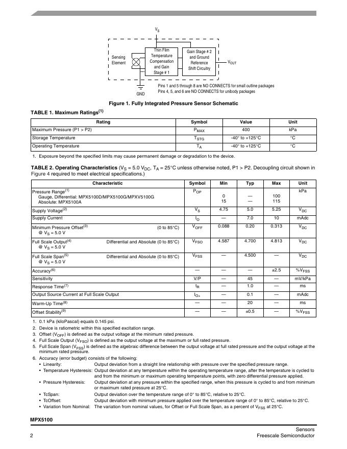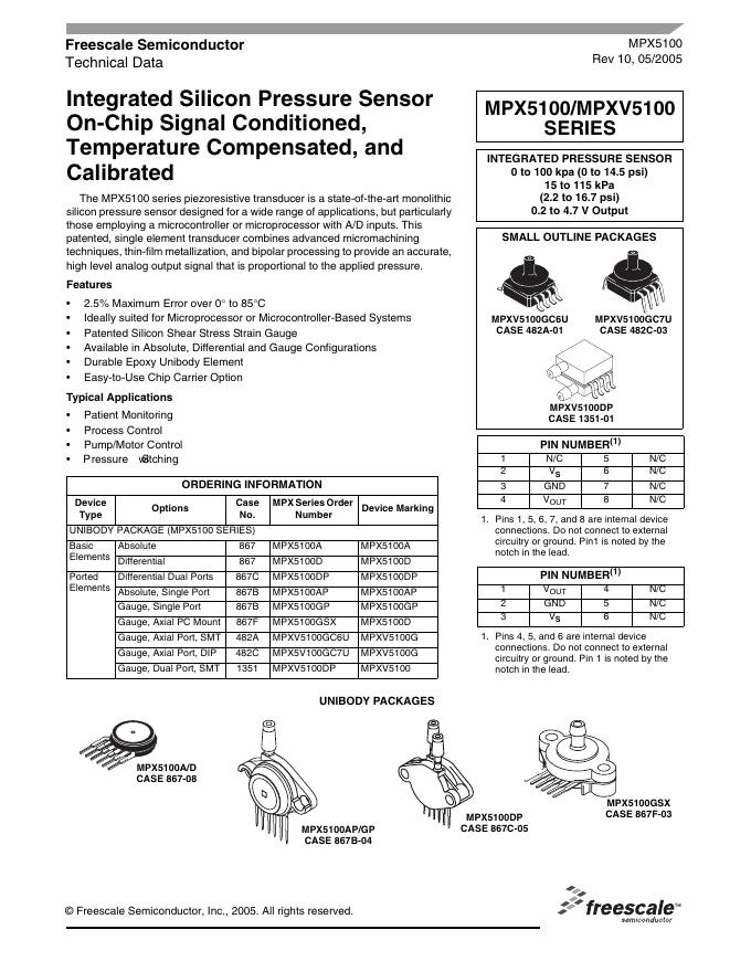 FREESCALE SEMICONDUCTOR MPX5100/MPXV5100 SERIES Freescale Semiconductor 数据手册.pdf