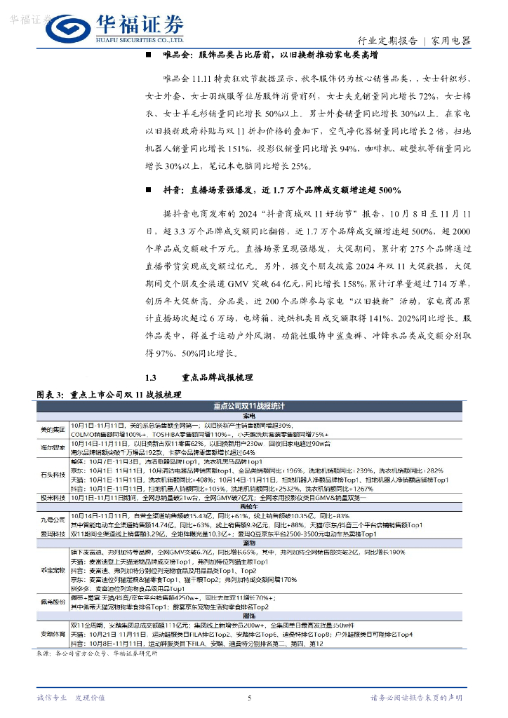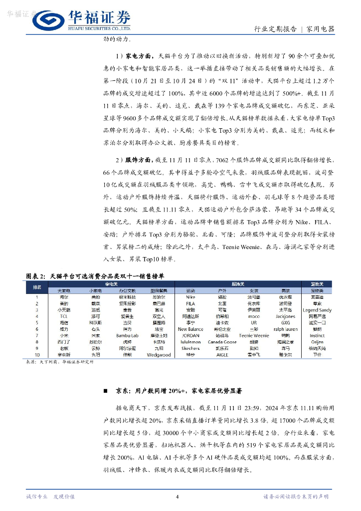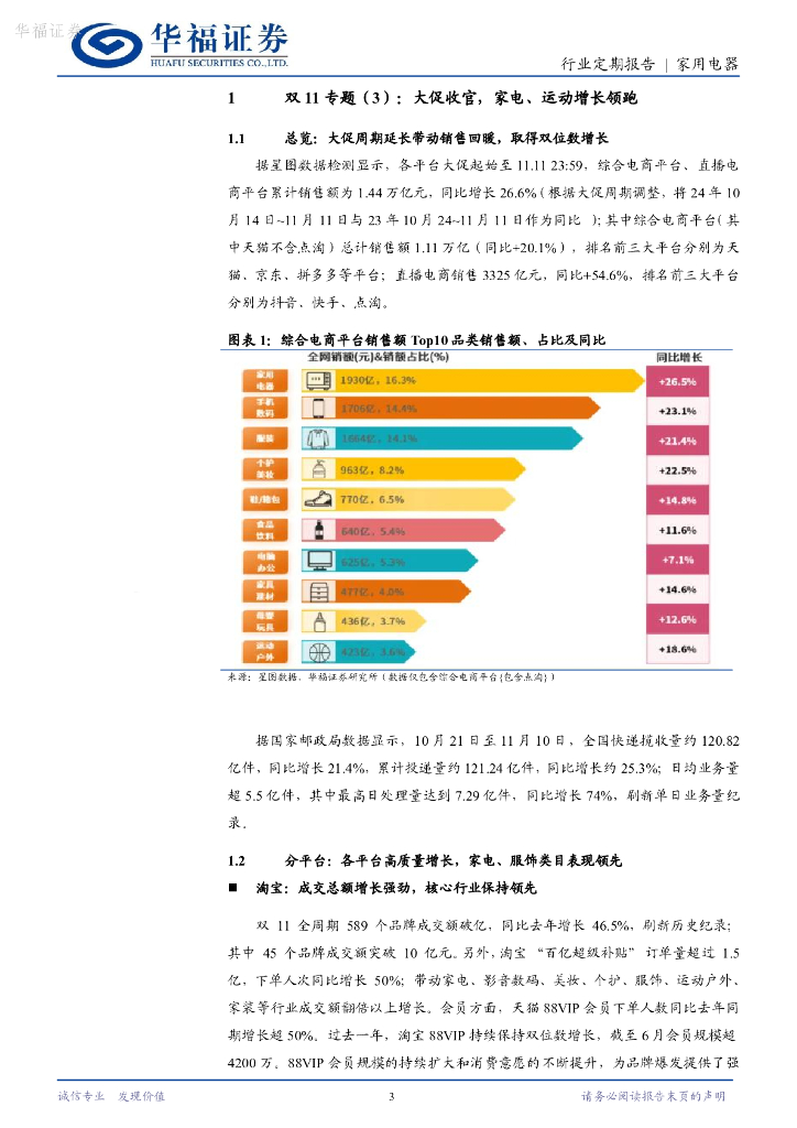 华福证券:家用电器行业24W46周观点:双11专题(3),大促收官,家电、运动增长领跑.pdf