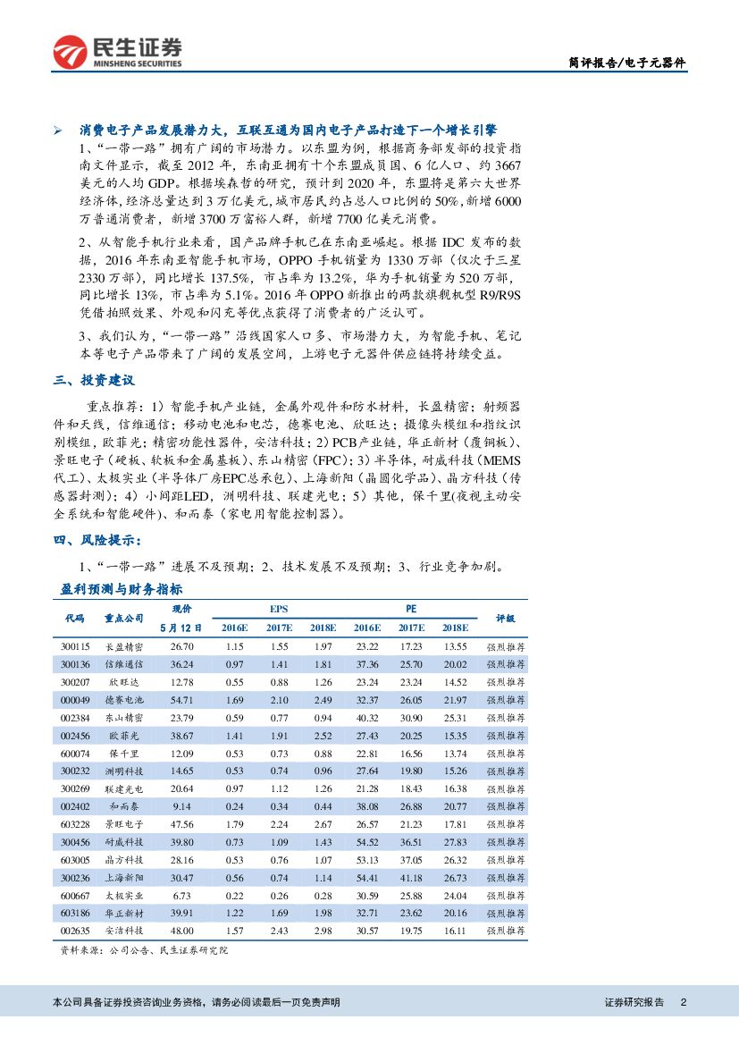 民生证券:电子元器件简评报告:“一带一路”将成消费电子下一个增长引擎.pdf