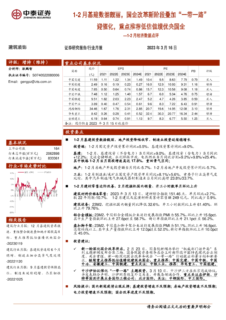 中泰证券:建筑装饰行业1-2月经济数据点评:1-2月基建数据靓丽,国企改革新阶段叠加“一带一路”迎催化,重点推荐低估值绩优央国企.pdf