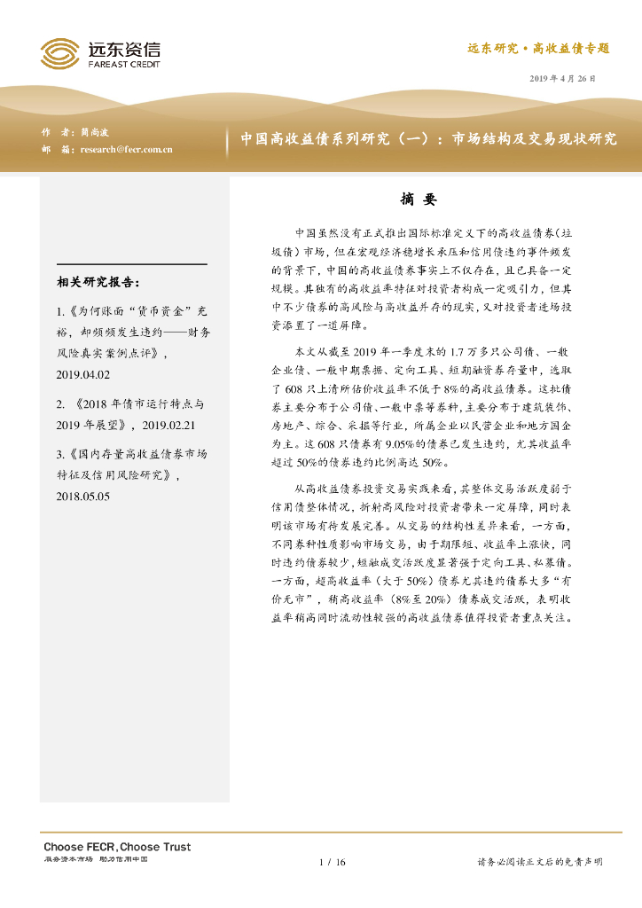 远东资信:中国高收益债系列研究(一):市场结构及交易现状研究.pdf