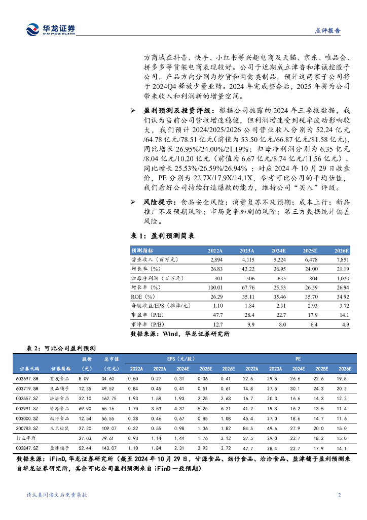 华龙证券:盐津铺子(002847)-2024年三季报点评报告:收入稳健增长,税率影响净利率略承压.pdf