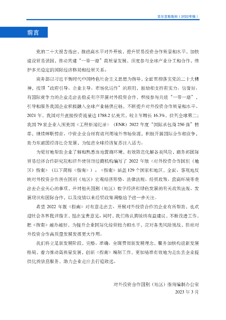 商务部:对外投资合作国别(地区)指南:吉尔吉斯斯坦(2022年版).pdf