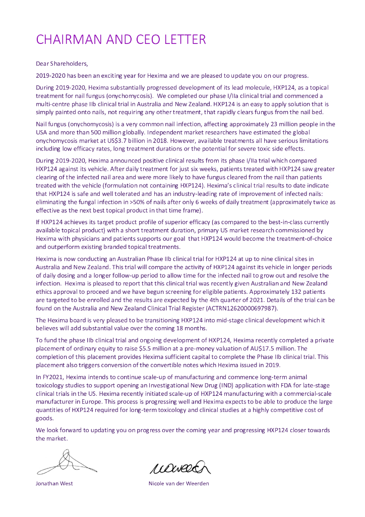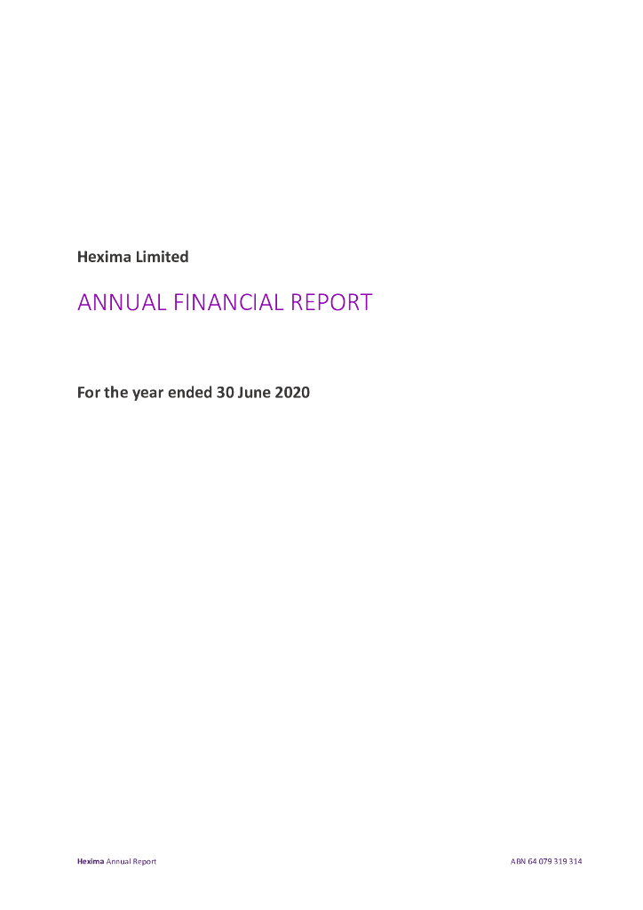 Hexima Limited(HXL)2020财年年度报告(英文版).pdf