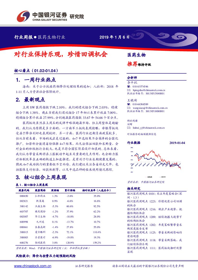 中国银河:医药生物行业周报:对行业保持乐观,珍惜回调机会.pdf