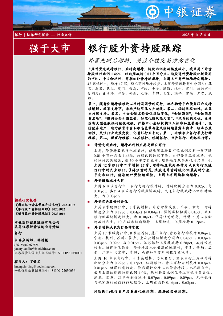 中银证券:银行股外资持股跟踪:外资先减后增持,关注个股交易方向变化.pdf