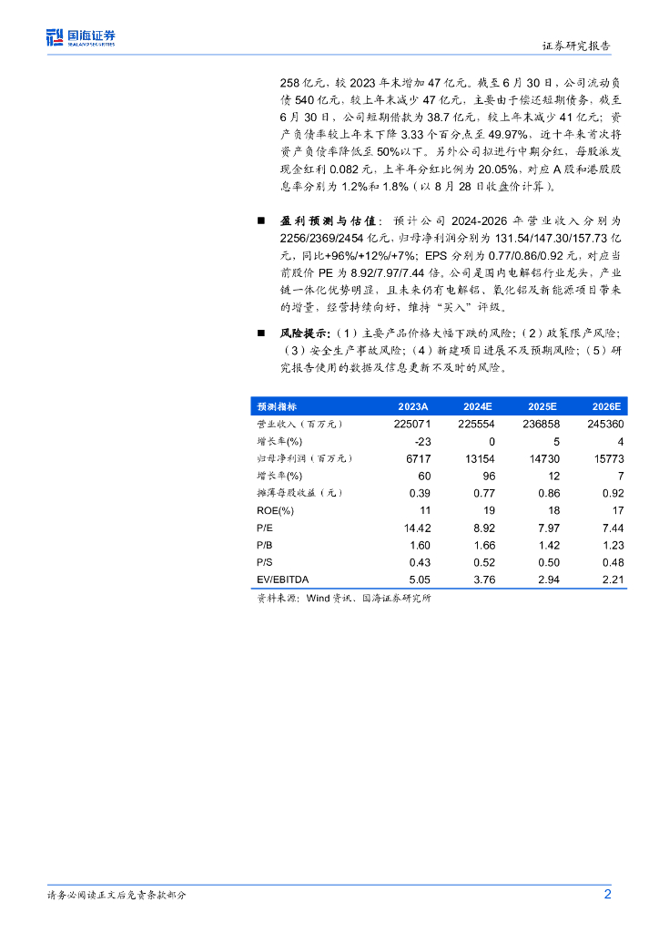 国海证券:中国铝业(601600)-2024年中报点评:原铝量价齐升,氧化铝涨价增厚业绩.pdf