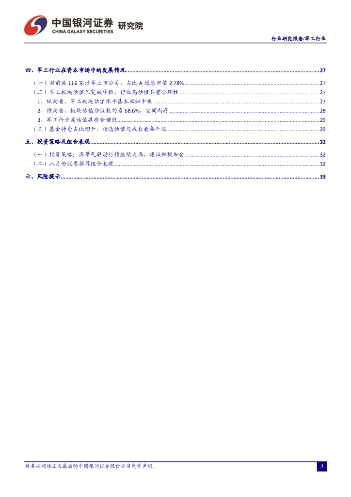 中国银河:军工行业动态报告:中报业绩验证行业景气度高企,估值切换将推动板块持续走高.pdf
