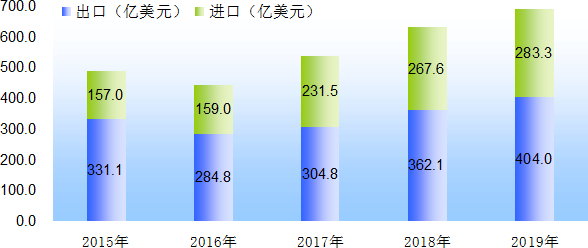 全年对外承包工程新签合同金额21.4亿美元,比上年下降57.7%;完成营业额33.5亿美元,增长11%;当年外派劳务人员10182人,增长6.7%。全年新批境外企业(机构)87个,实际对外投资13.6亿美元,下降6.1%,其中对“一带一路”沿线国家和地区投资2.7亿美元,增长45.3%。