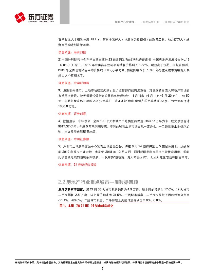 东方证券:2019年第21周地产周报:周度销售回落,土地溢价率仍维持高位.pdf