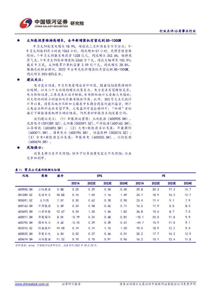 中国银河:公用事业行业:9月电力数据点评:火电盈利能力有望改善,太阳能投资维持高增长.pdf