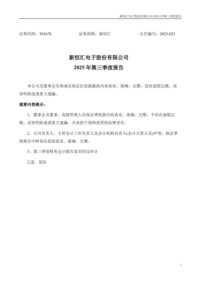 301678-新恒汇:2025年三季度报告.pdf