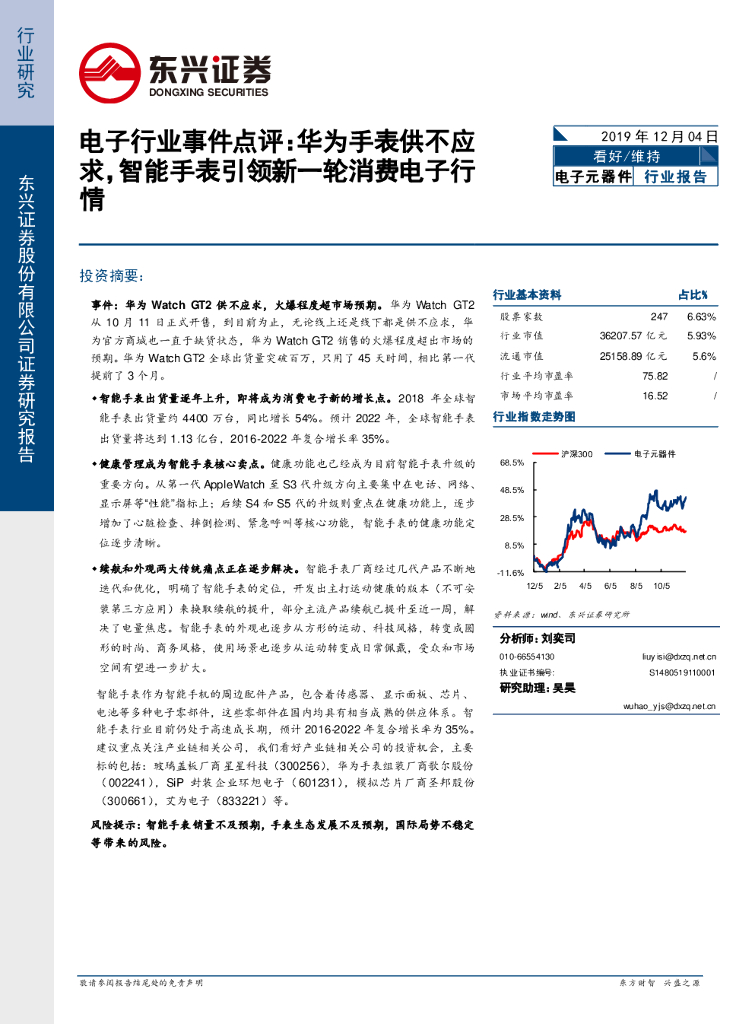 东兴证券:电子行业事件点评:华为手表供不应求,智能手表引领新一轮消费电子行情.pdf