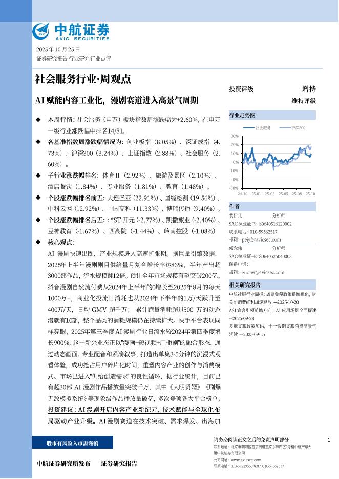 中航证券:社会服务行业·周观点:AI赋能内容工业化,漫剧赛道进入高景气周期.pdf