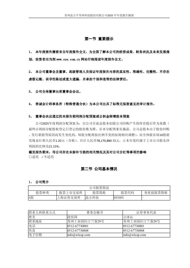 603005-晶方科技:晶方科技2025年年度报告摘要.pdf