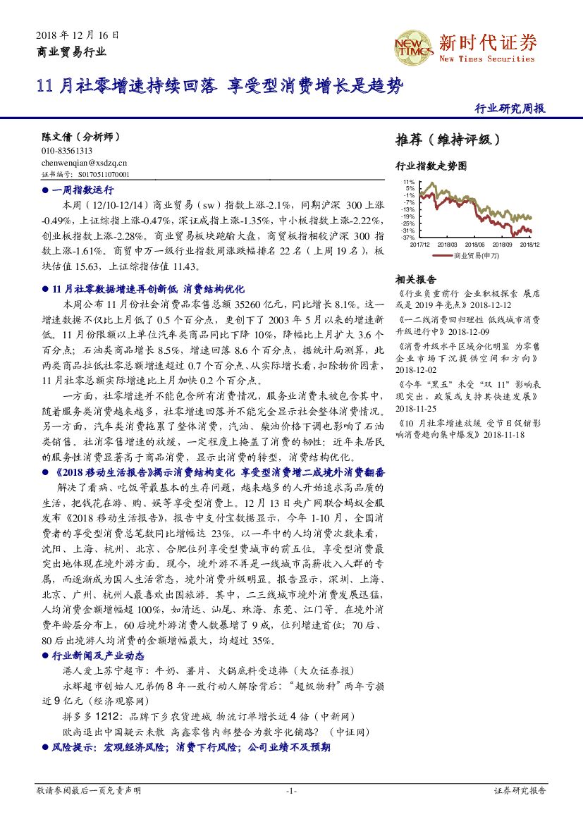 新时代证券:商业贸易行业研究周报:11月社零增速持续回落 享受型消费增长是趋势.pdf