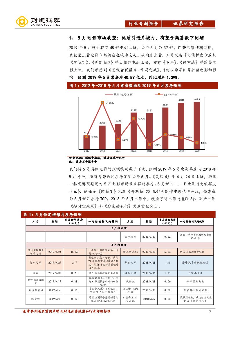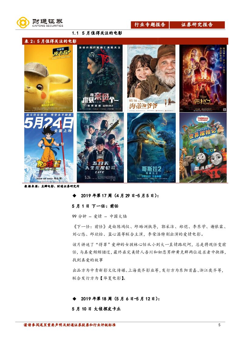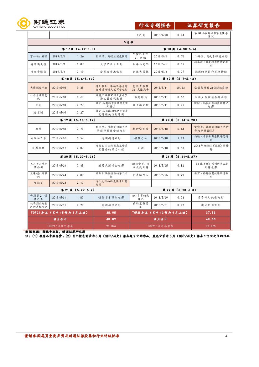 财通证券:传媒行业专题报告:5月票房预测专题报告:5月票房预计微增,建议关注受益方中影.pdf
