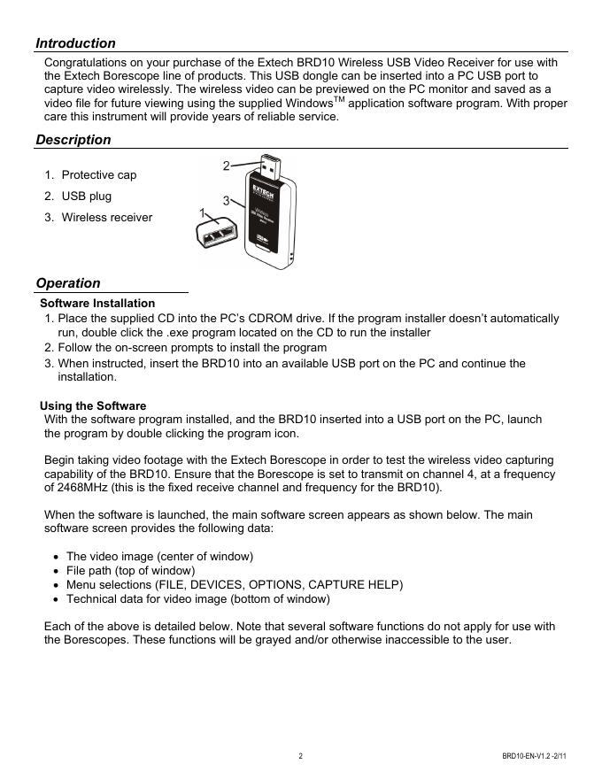 EXTECH INSTRUMENTS BRD10 Wireless USB Video Receiver 用户指南.pdf