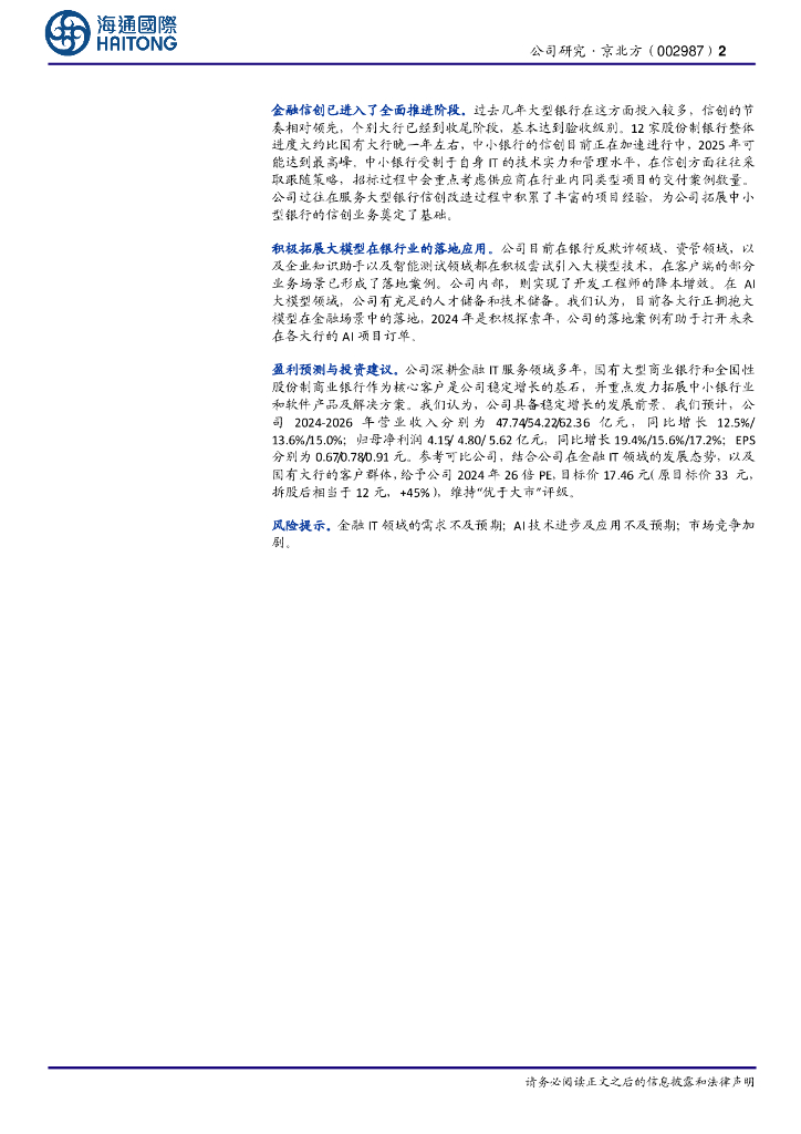 海通国际:京北方(002987)-金融IT头部企业,软件信创可期.pdf