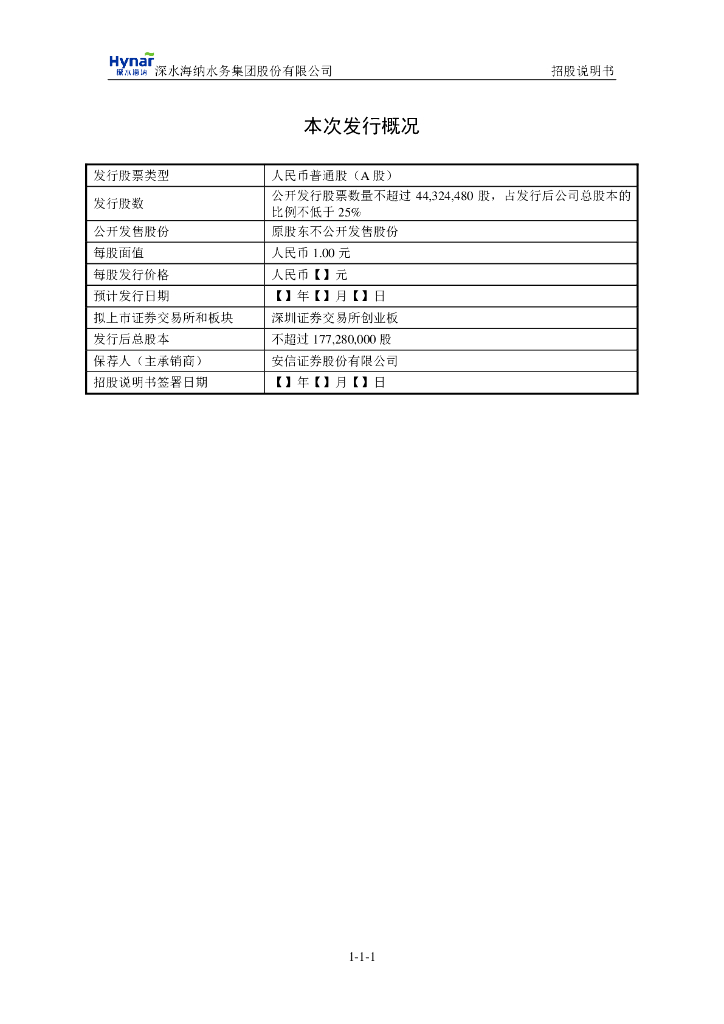 深水海纳水务集团股份有限公司深交所创业板IPO上市招股说明书.pdf