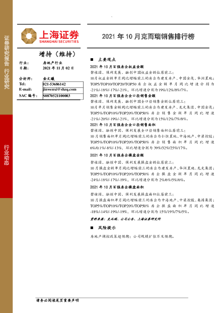 上海证券:房地产行业2021年10月克而瑞销售排行榜.pdf