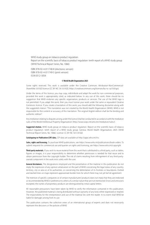 WHO世界卫生组织:2025年世界卫生组织烟草产品监管研究小组:烟草产品监管的科学基础报告(英文版).pdf