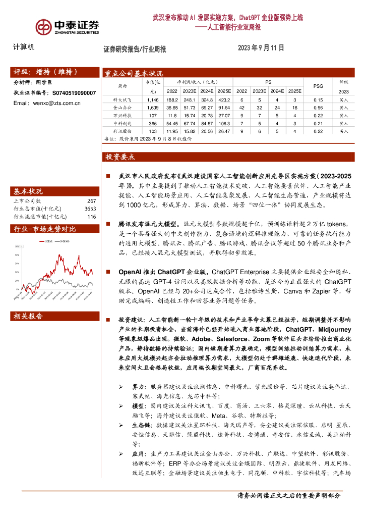 中泰证券:人工智能行业双周报:武汉发布推动AI发展实施方案,ChatGPT企业版强势上线.pdf