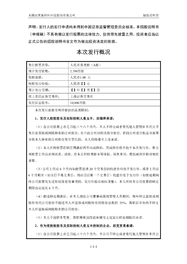 无锡派克新材料科技股份有限公司上交所主板IPO上市招股说明书.pdf