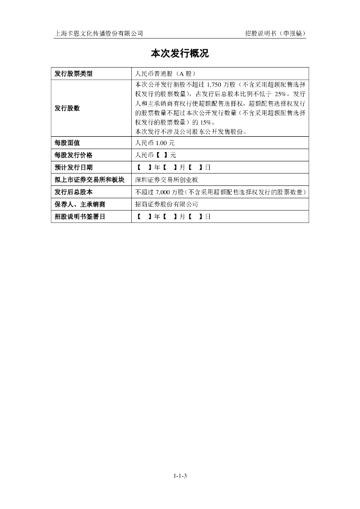 上海卡恩文化传播股份有限公司深交所创业板IPO上市招股说明书.pdf