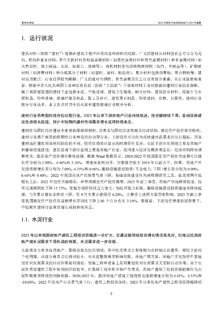 新世纪评级:2023年建材行业信用回顾与2024年展望报告.pdf