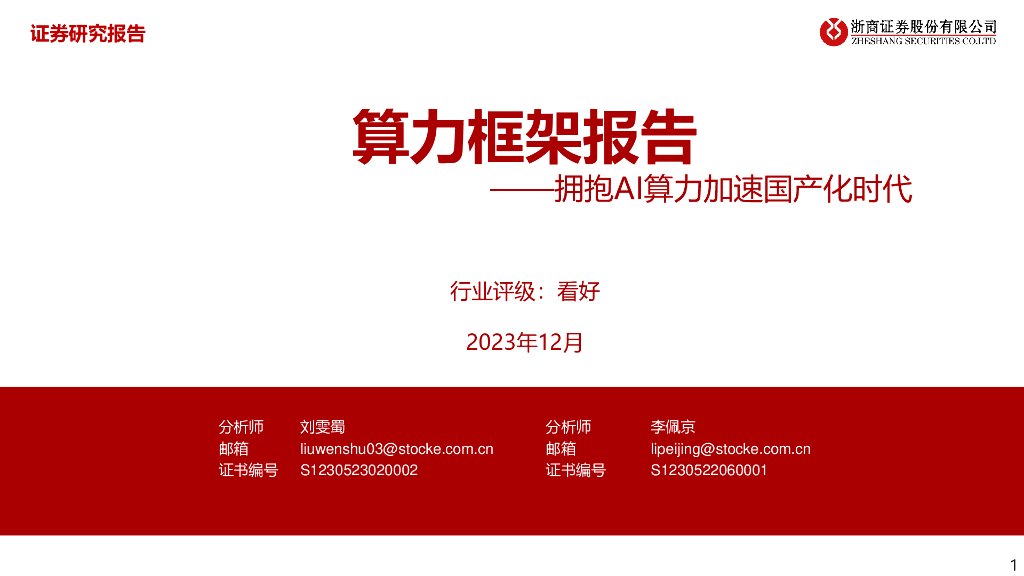 浙商证券:算力框架报告——拥抱AI算力加速国产化时代.pdf