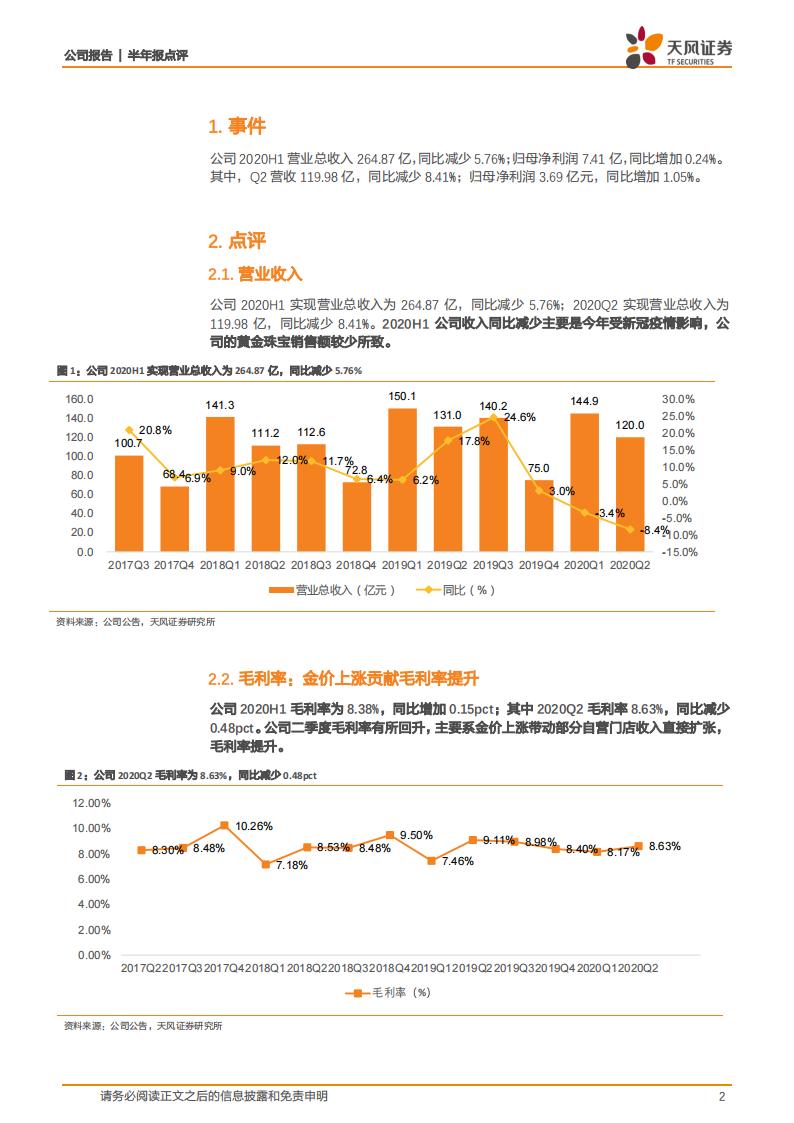 天风证券:老凤祥(600612)-20H1金价上涨带动公司盈利稳健增长,疫情期间门店保持逆势扩张.pdf