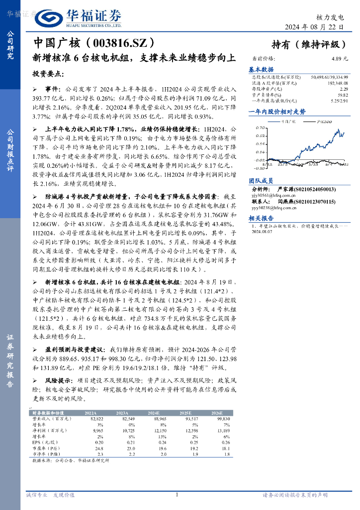 华福证券:中国广核(003816)-新增核准6台核电机组,支撑未来业绩稳步向上.pdf