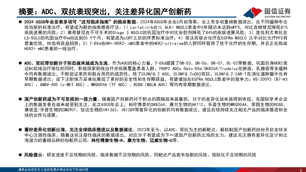 国信证券:医药生物2024ASCO年会总结:ADC、双抗表现突出,关注差异化国产创新药.pdf